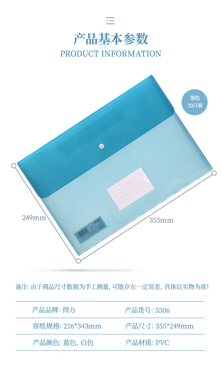 包装清单  :   加厚按扣资料袋 办公用票据档案袋防水塑料文件套 10个