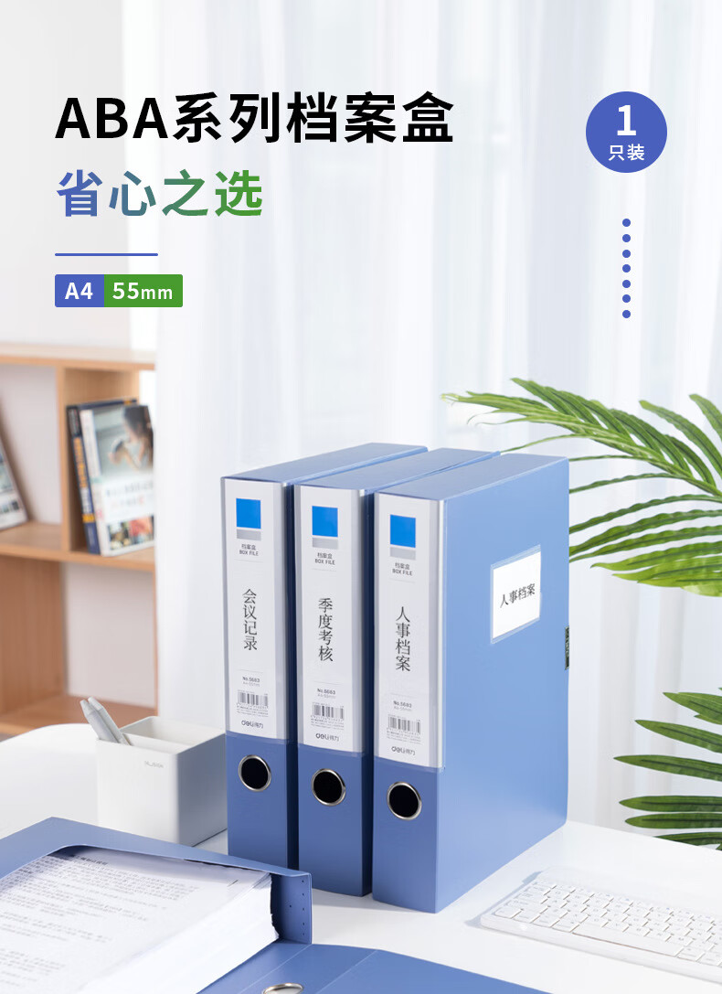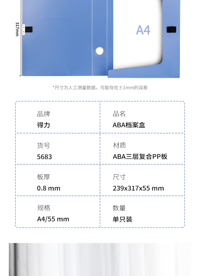 包装清单  :   A4塑料文件盒资料盒公文盒5683档案盒背宽5.5cm A4 55mm 蓝