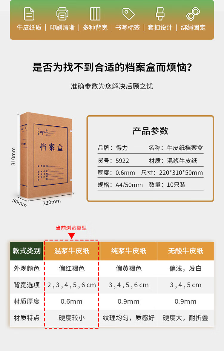 包装清单  :   牛皮纸档案盒A4纸制文件盒5cm资料盒会计凭证盒
