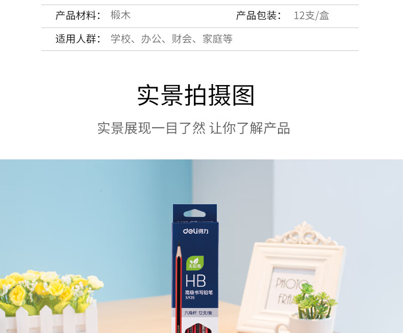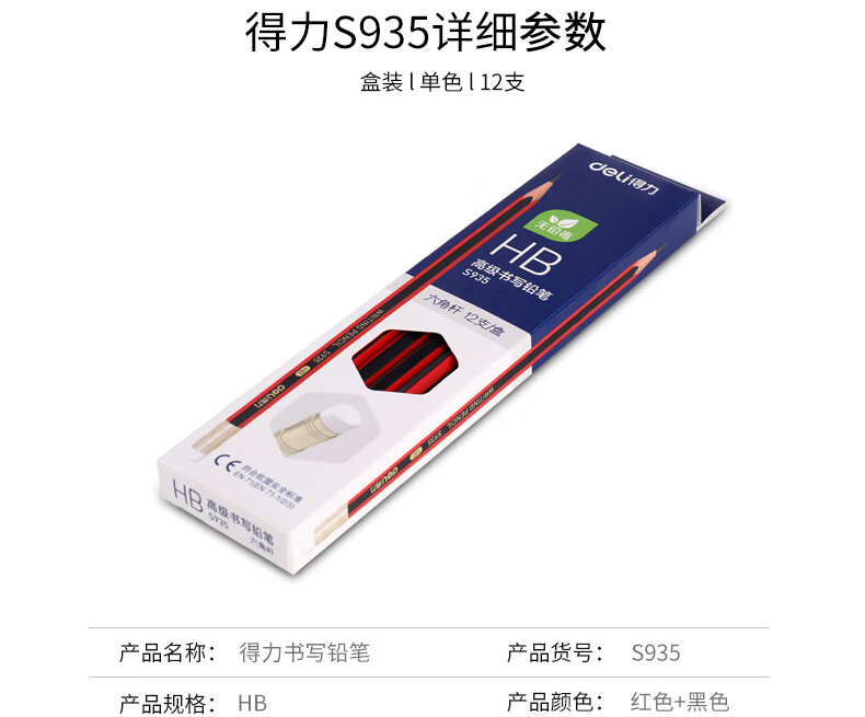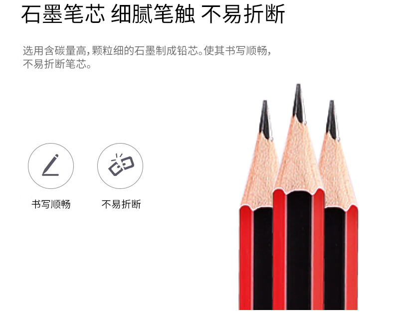 适用范围  :   HB书写铅笔学生铅笔考试铅笔高级铅笔(红色)(12支/盒)