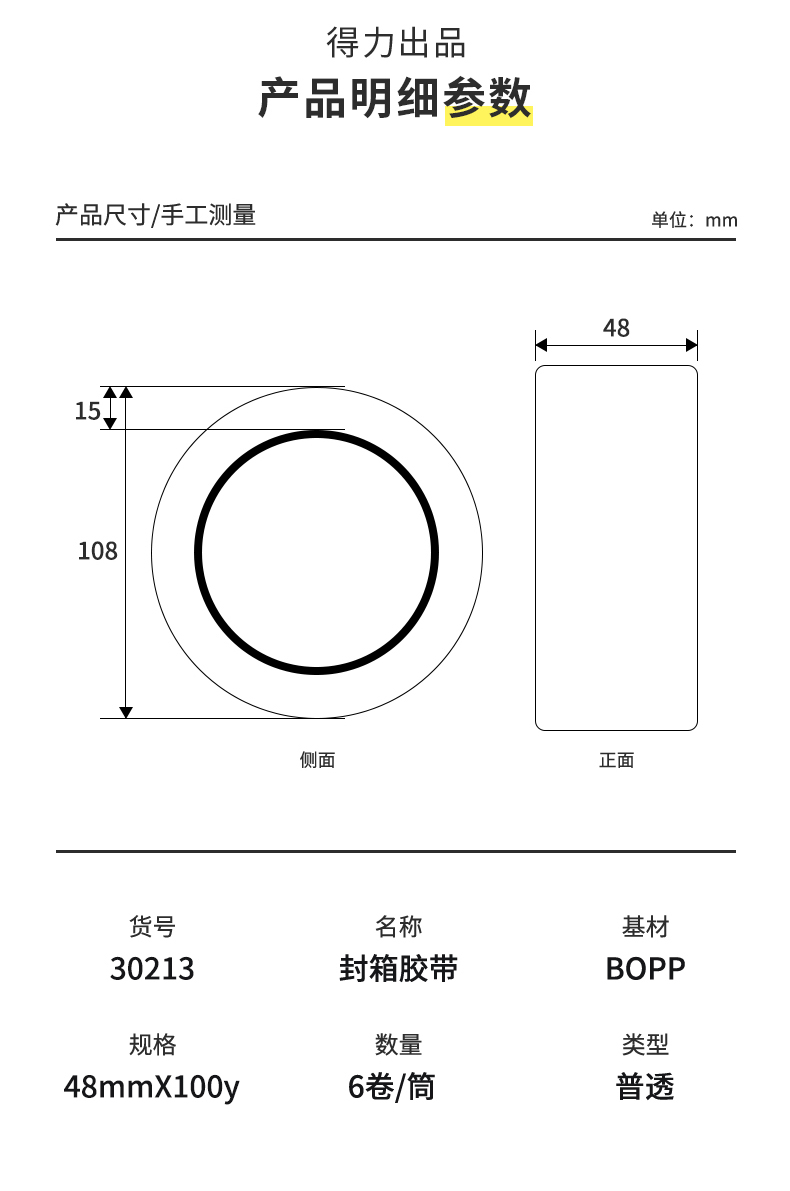 包装清单  :   透封箱胶带48mm*100y 透明胶带 宽胶纸 打包胶带封箱带 30213【48mm*100y*45um】1卷