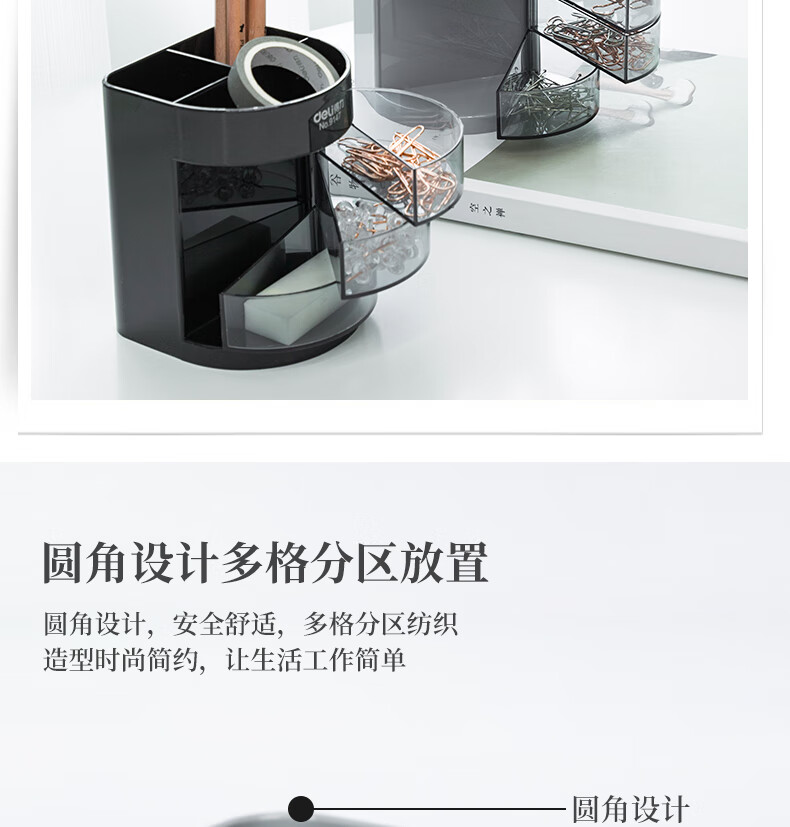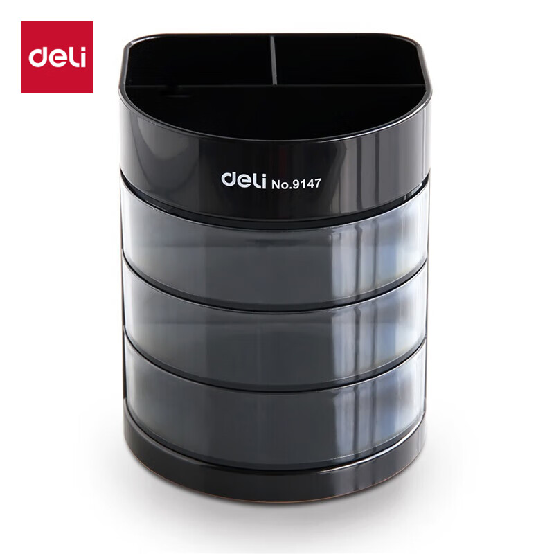 包装清单  :   三层多功能办公笔筒 创意桌面收纳盒 办公学习用品 黑色9147