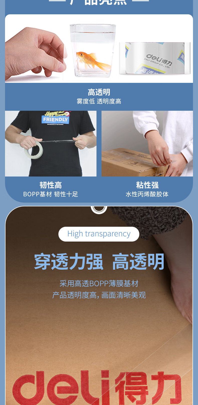 得力/deli 30289 胶带 高品质高透明封箱胶带打包胶带 55mm*80m*50um 1卷