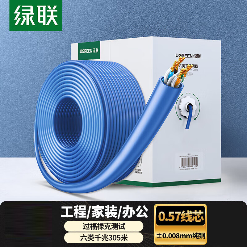 包装清单  :   六类千兆非屏蔽【纯铜芯0.57mm】蓝色 305米