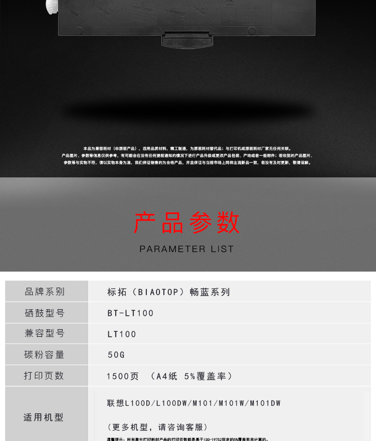 标拓/Biaotop BT-LT100 粉盒 适用联想L100D/L100DW/M101/M101W/M101DW打印机