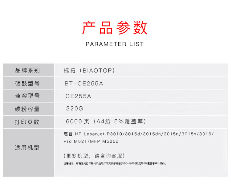 标拓/Biaotop BT-CE255A 硒鼓 适用惠普HP LaserJet P3010/3015d/3016/Pro M521/MFP 黑色 6000页