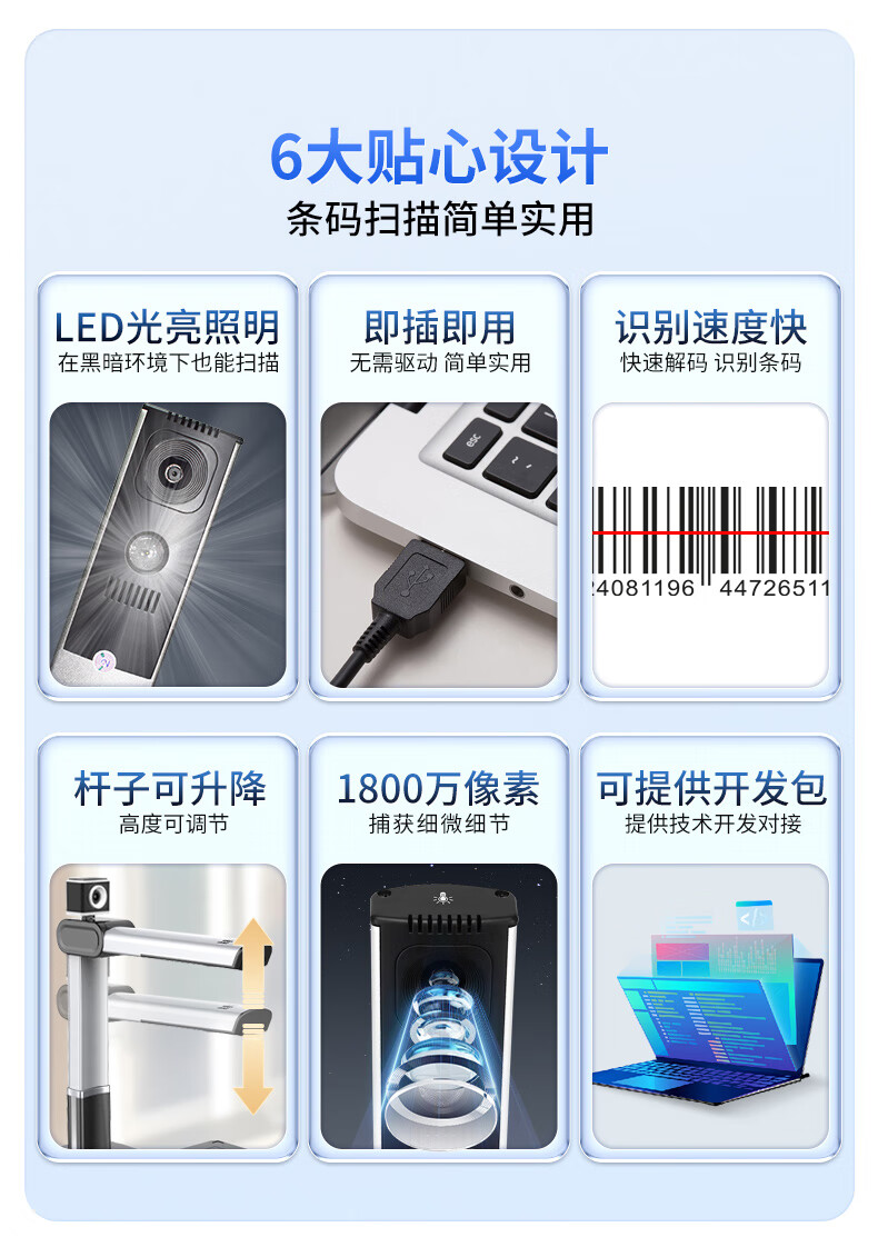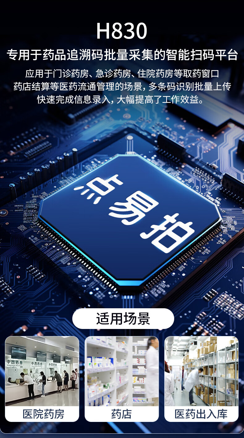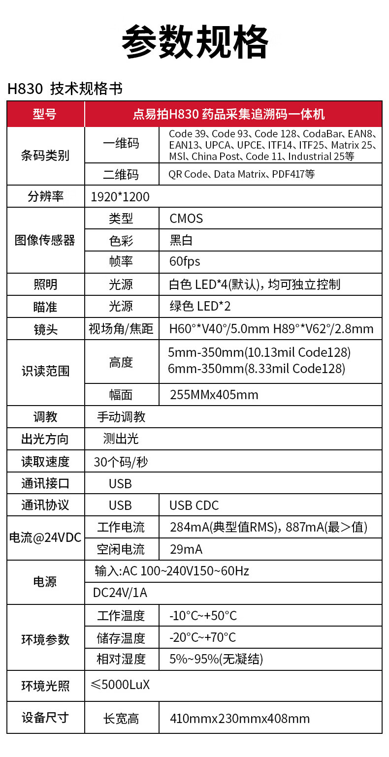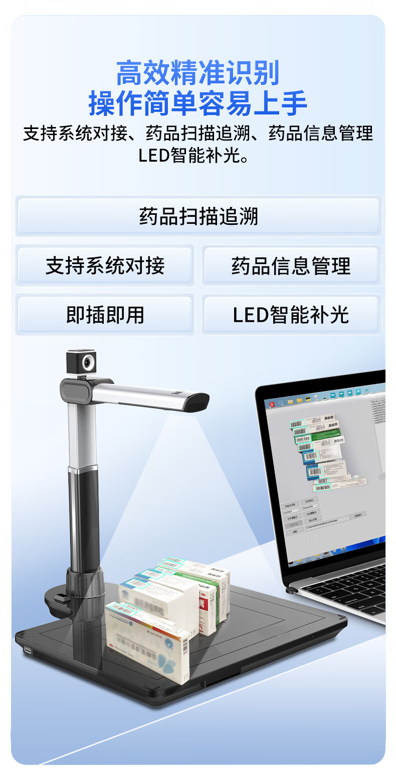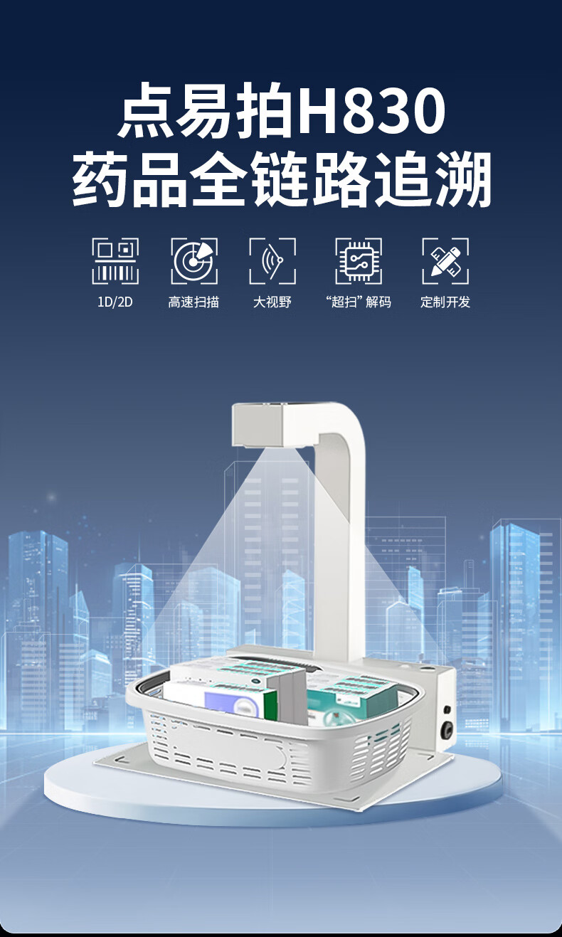 点易拍 H830 高拍仪 药品追溯码采集一体机高拍仪 多条码批量采集 即插即用 医院社区药品溯源码扫描仪 【医保推荐】硬件解码/即插即用/100码