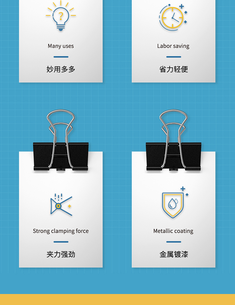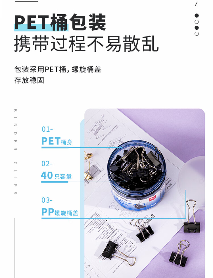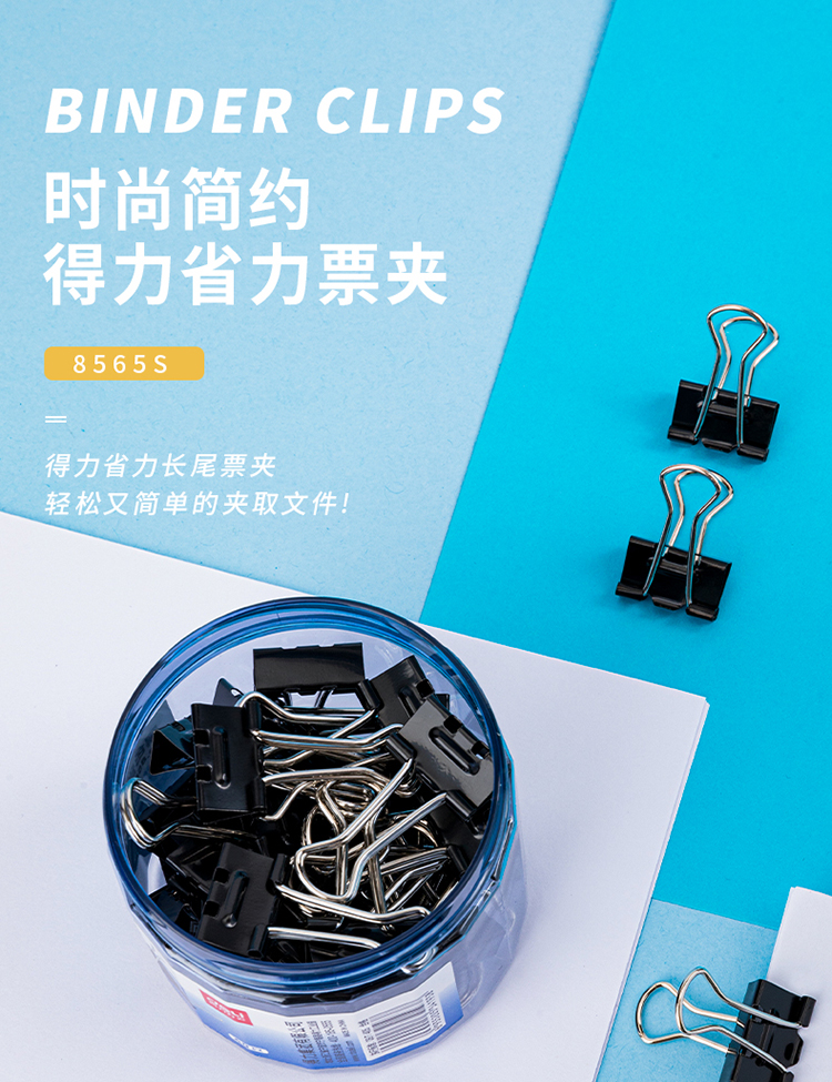 包装清单  :   40只19mm省力黑色长尾夹票夹 5号小号金属燕尾夹票据文件夹子 40只/筒