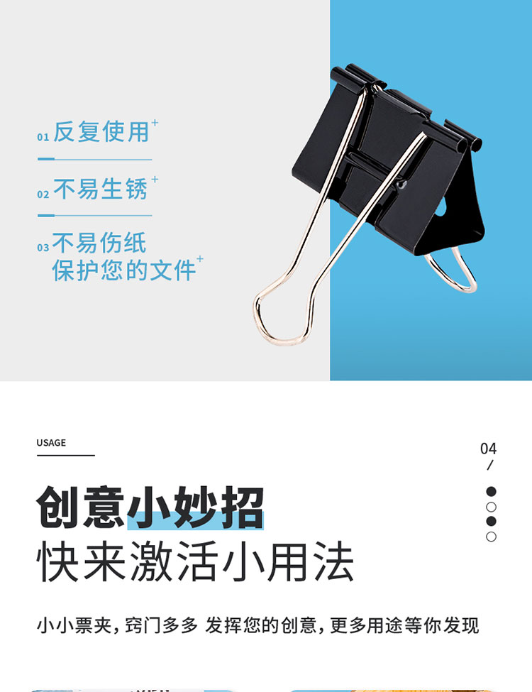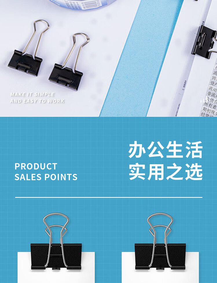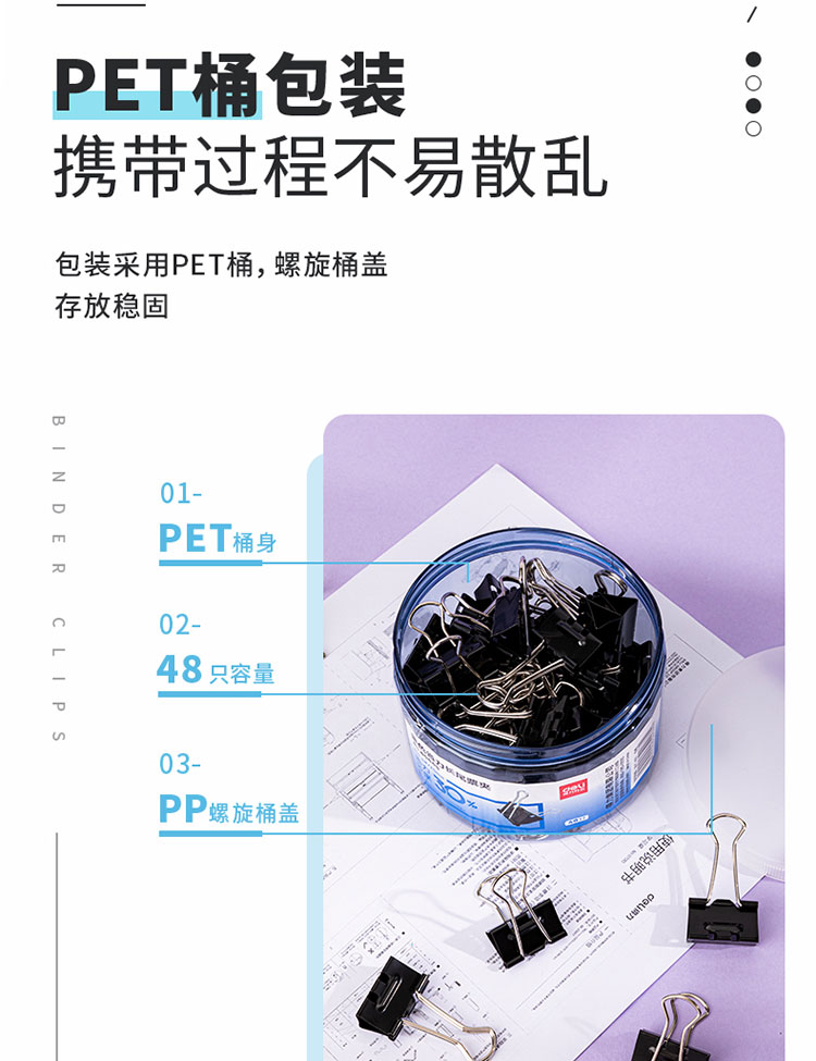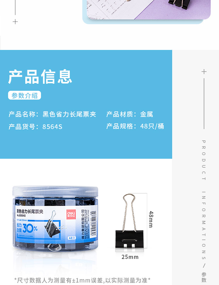 包装清单  :   48只25mm省力黑色长尾夹票夹 4号中号金属燕尾夹 办公用品 48只/筒