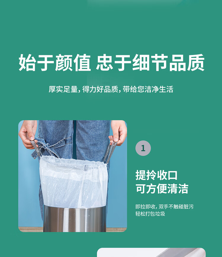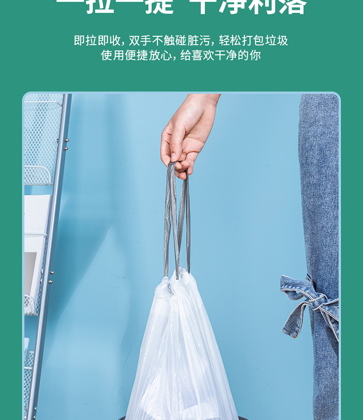 用途  :   45*50cm抽绳式垃圾袋便携牢固加厚大容量办公宿舍耐用量多垃圾收纳 3卷装 白色