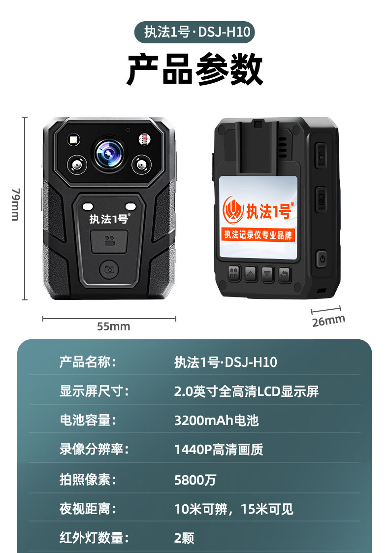 产品材质  :   插卡式执法记录仪2K高清红外夜视超长续航交通运输 256G