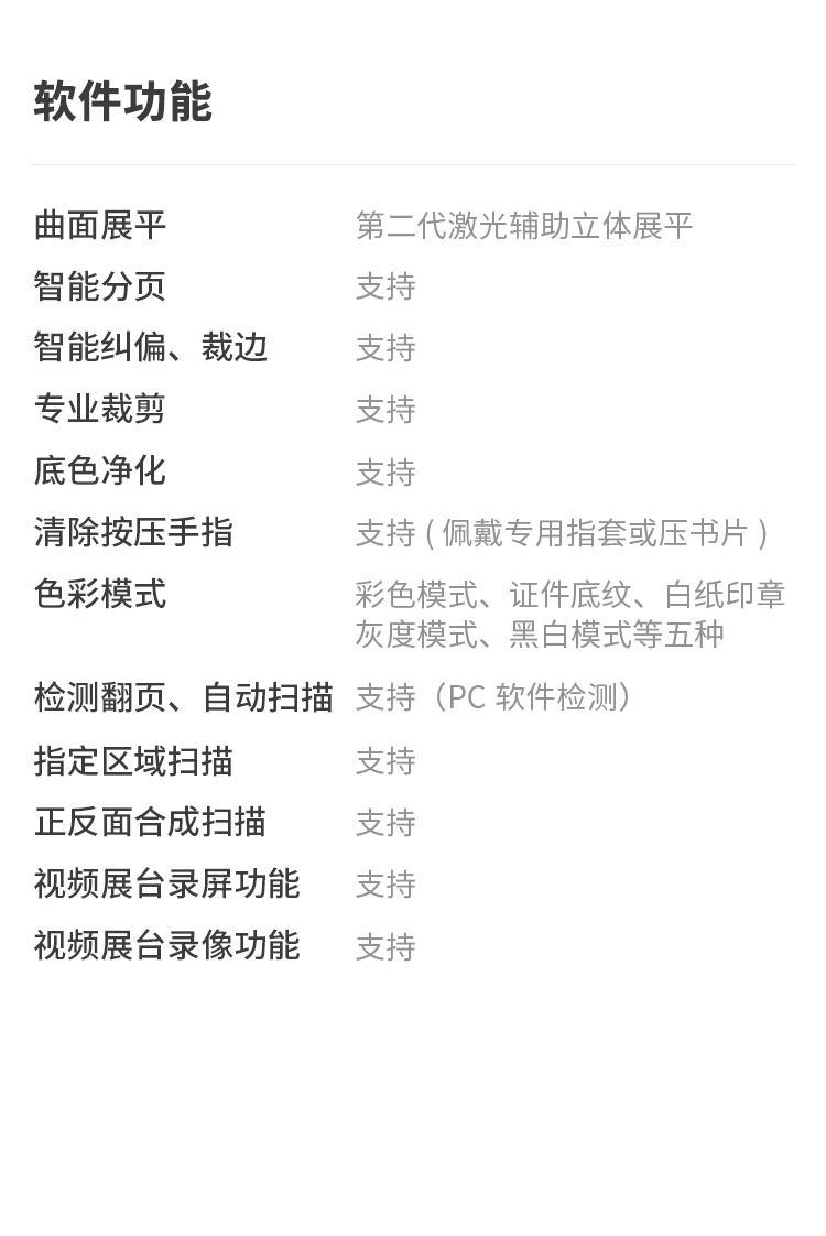 包装清单  :   设备主体、数据线、电源适配器、手按键、脚踏键、软质文稿台、专用指套、光盘、《入门指南》、质保卡