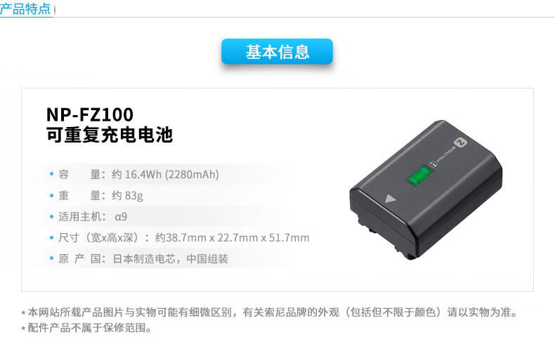 包装清单  :   NP-FZ100可重复充电电池 x1