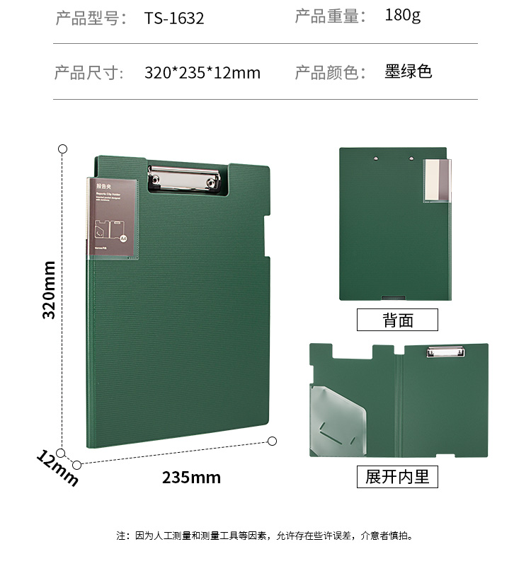 包装清单  :   A4竖式折页板夹*1