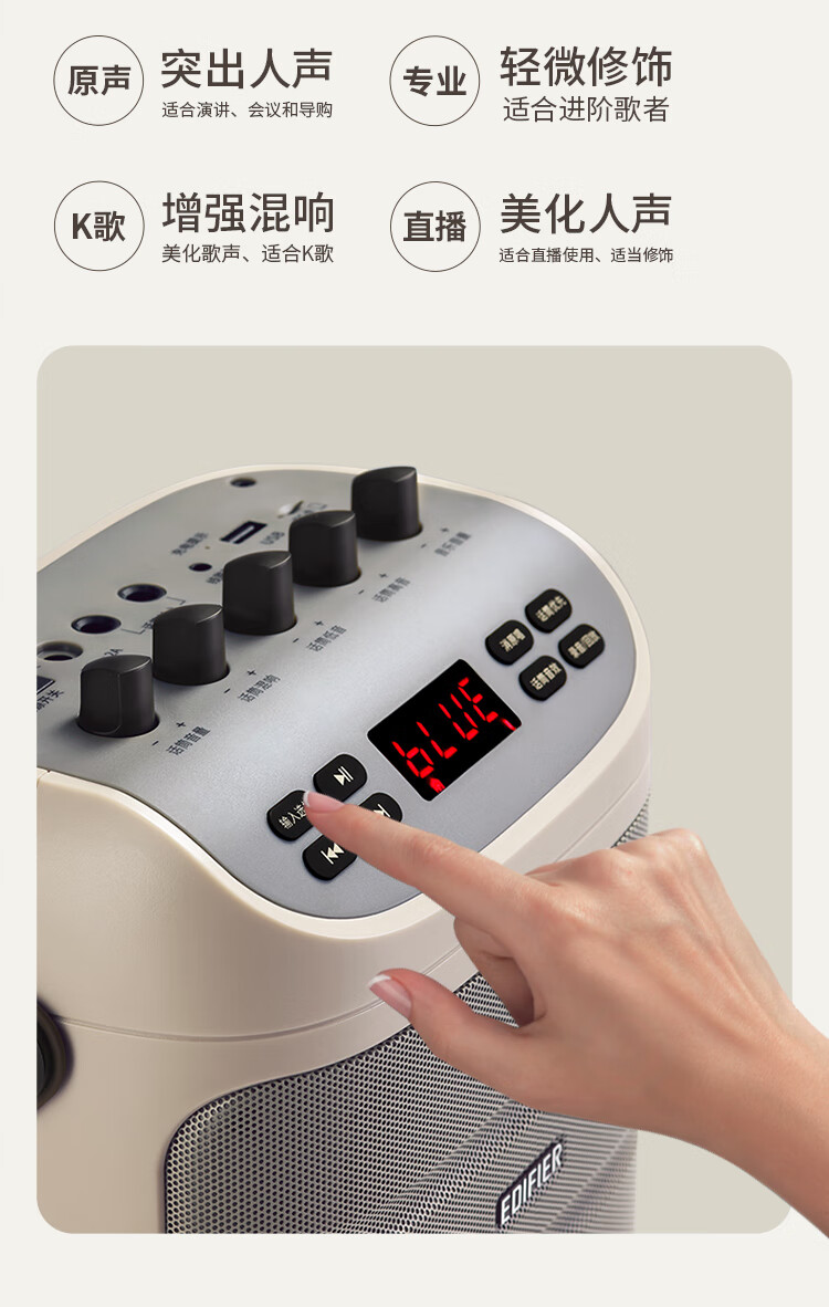 包装清单  :   音箱*1 无线话筒*1 电源适配器*1 连接线*1 说明书&保修卡*1