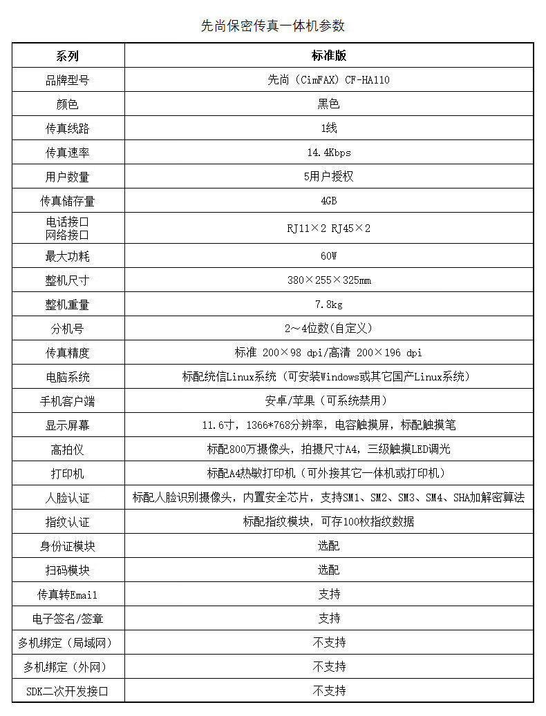 包装清单  :   传真一体机x1,12V电源x1,电容签字笔x1,说明书x1