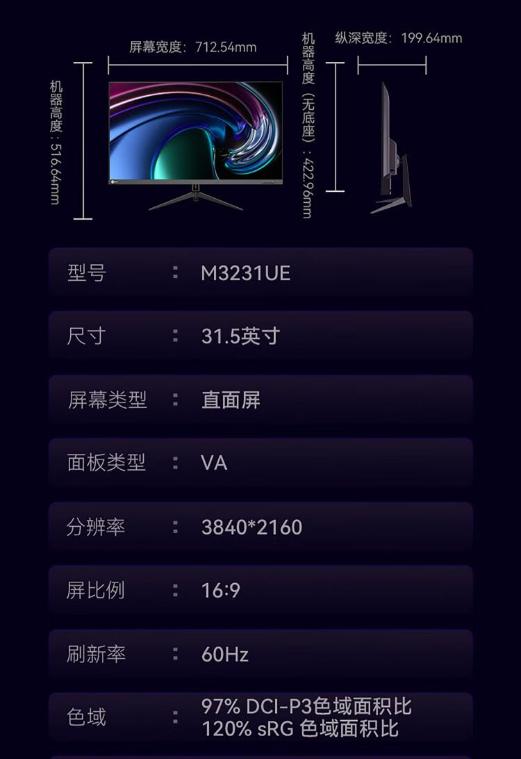 屏幕尺寸(英寸)  :   31.5