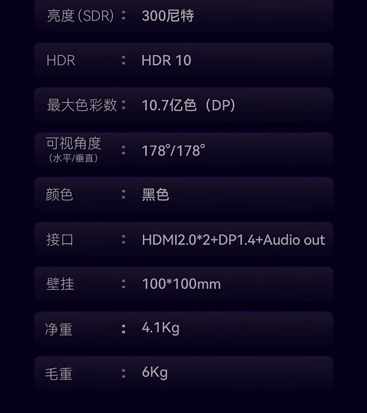 亮度值  :   300cd/m²