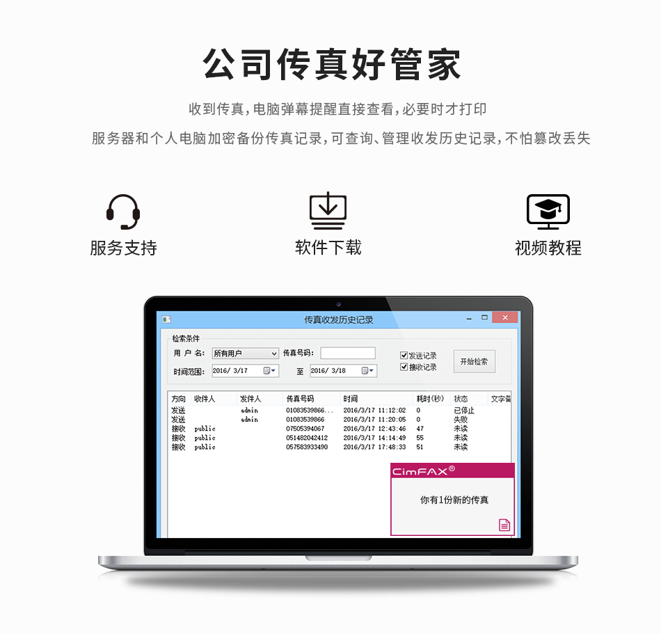 涵盖功能  :   传真