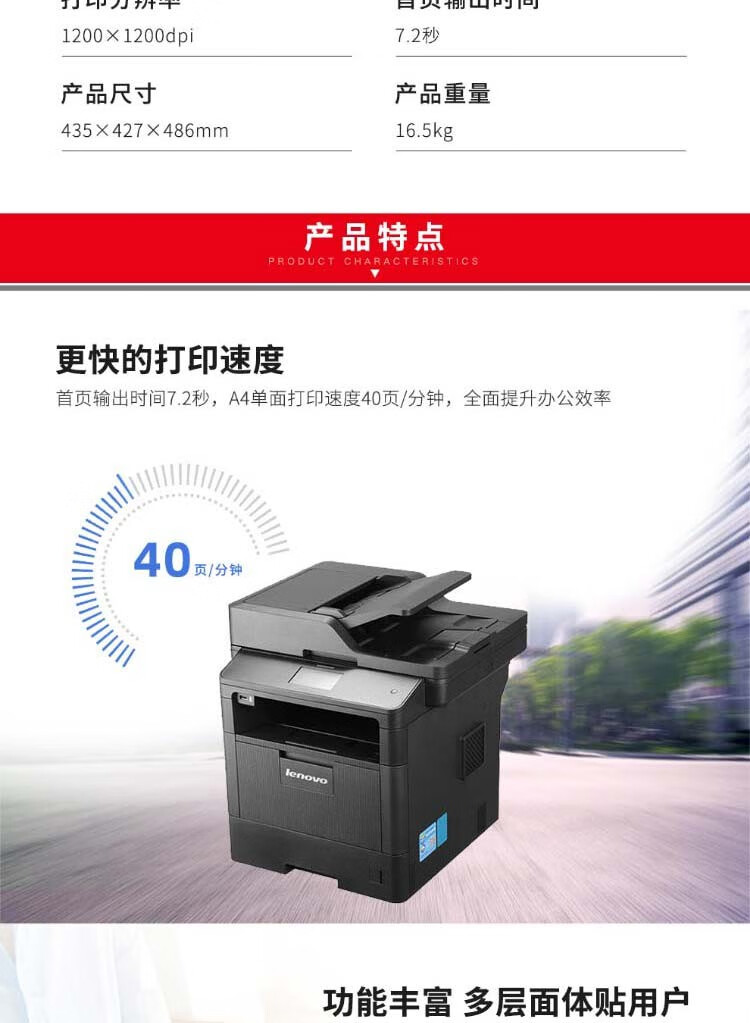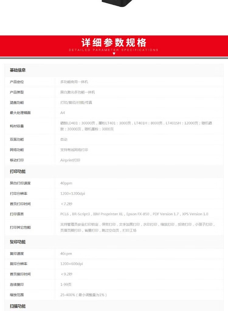 黑白打印速度(页/分钟 ppm)  :   40