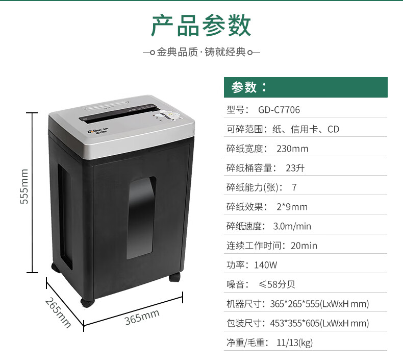碎纸宽度(mm)  :   230