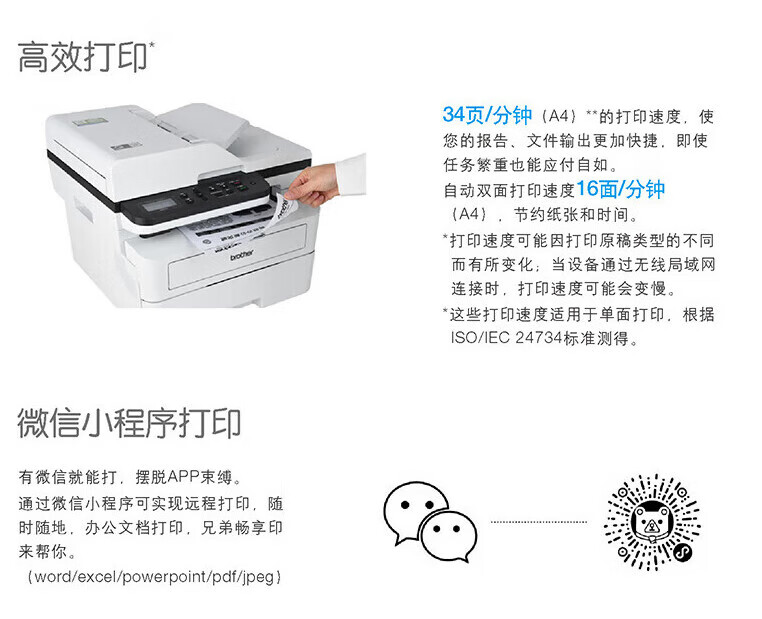 黑白打印速度(页/分钟 ppm)  :   34