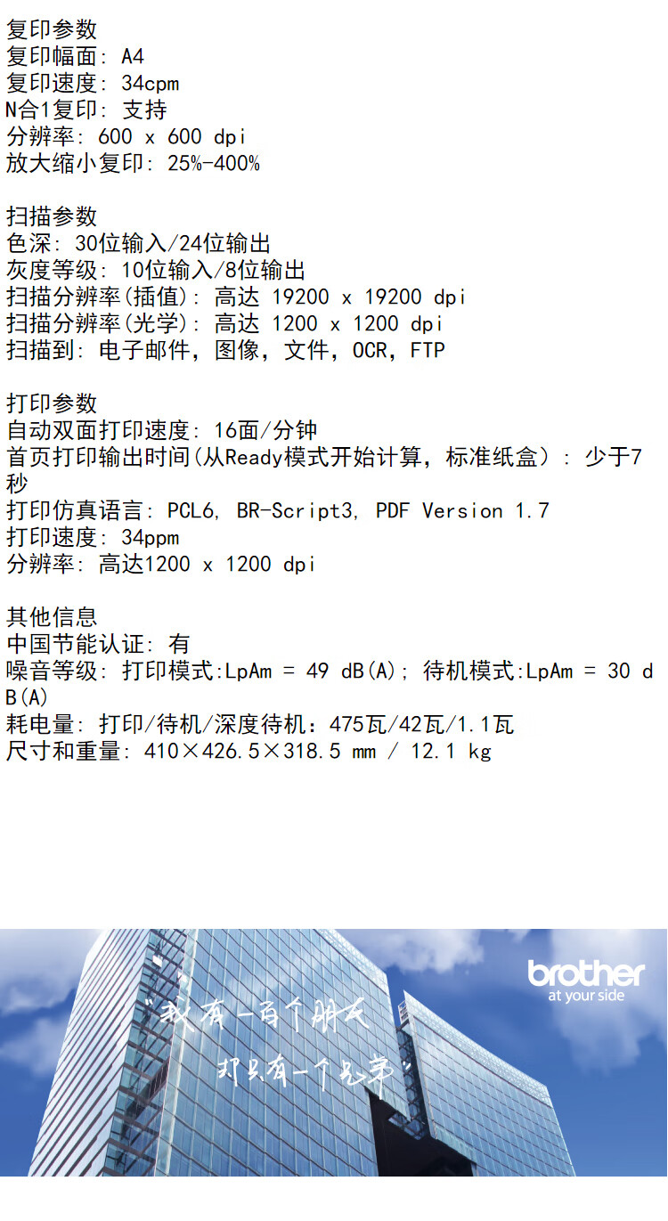 黑白打印速度(页/分钟 ppm)  :   34