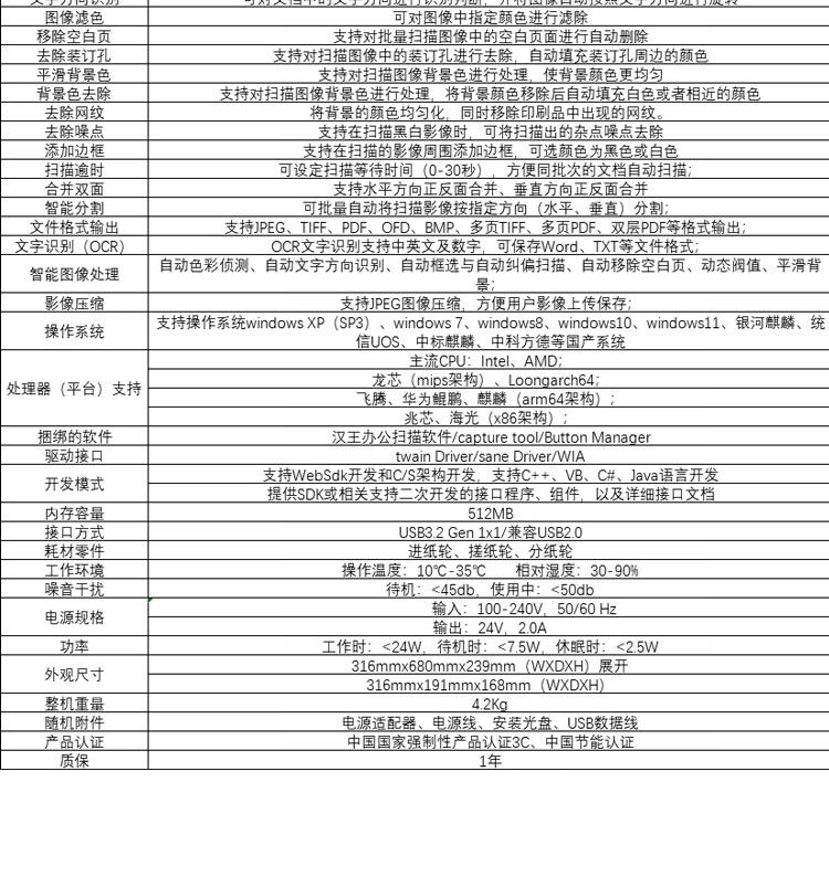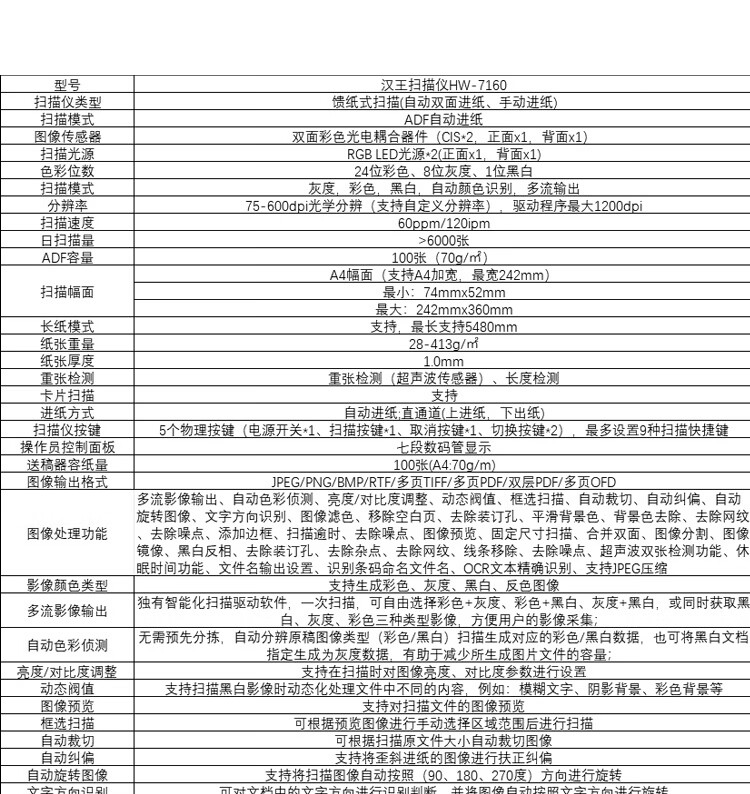 ADF彩色双面扫描速度(A4,200dpi)  :   120