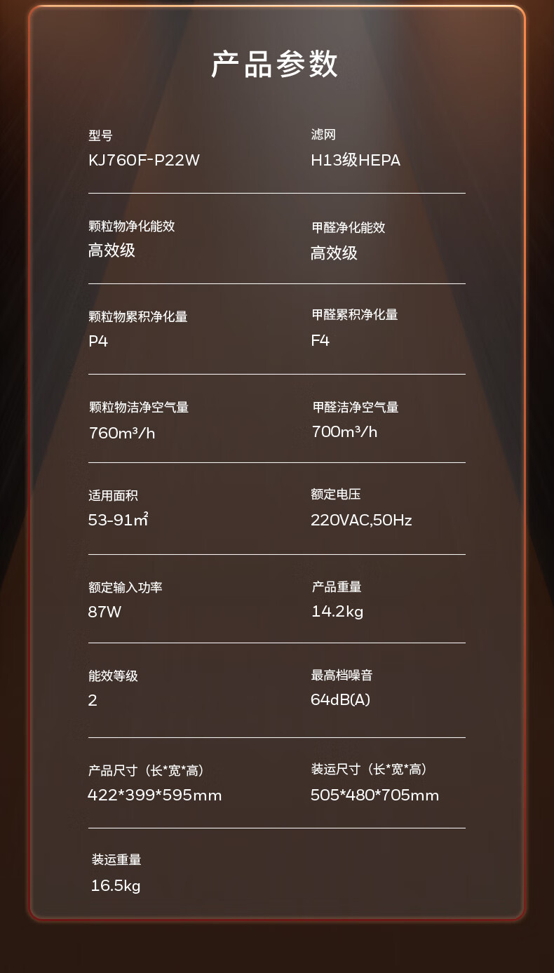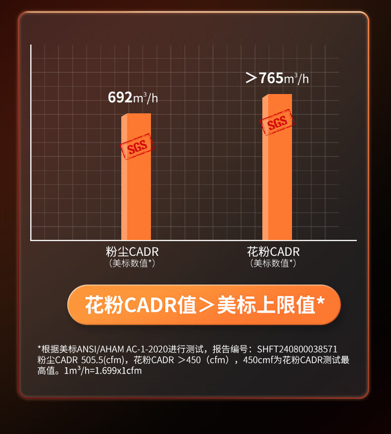 CADR值(m³/h)  :   760m³/h