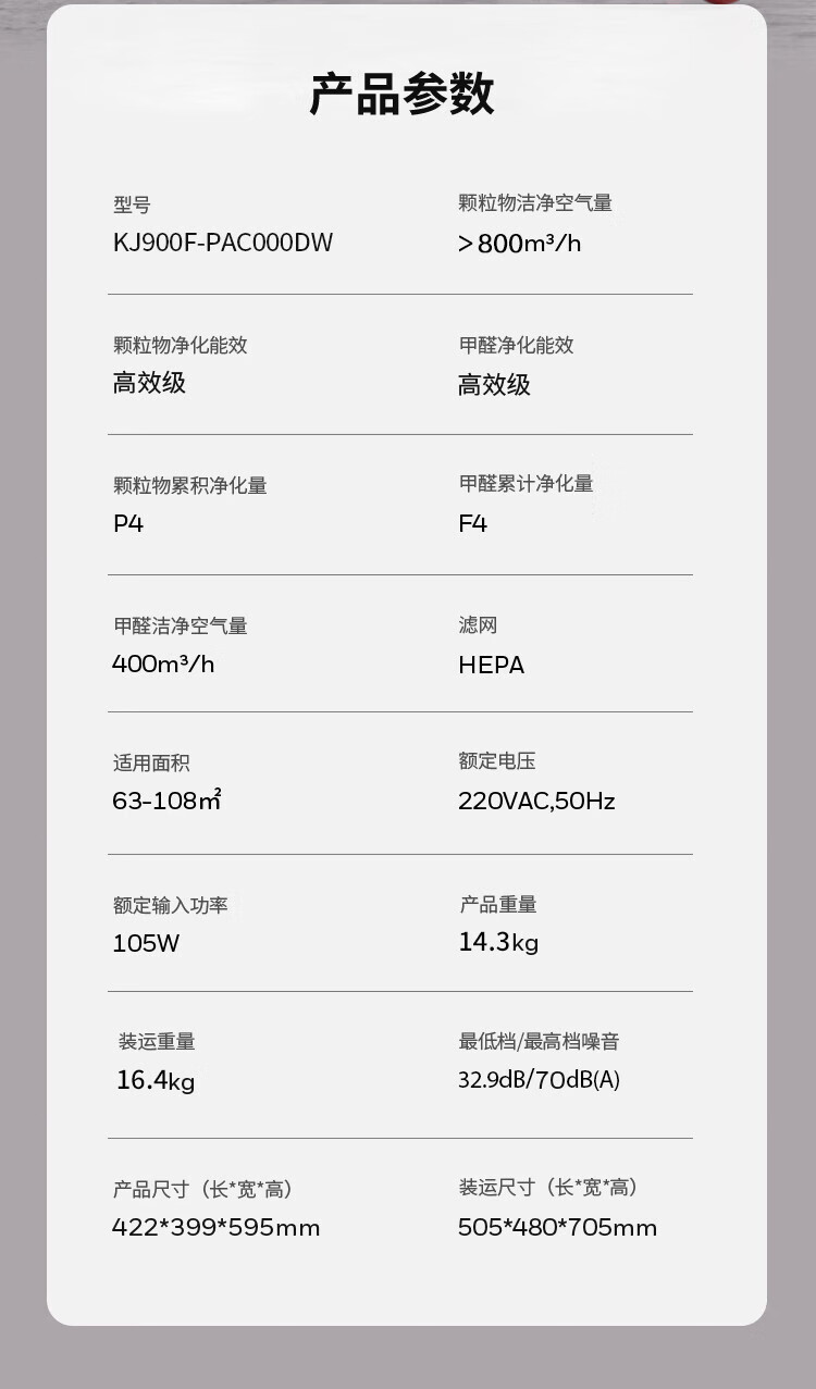 CADR值(m³/h)  :   914m³/h
