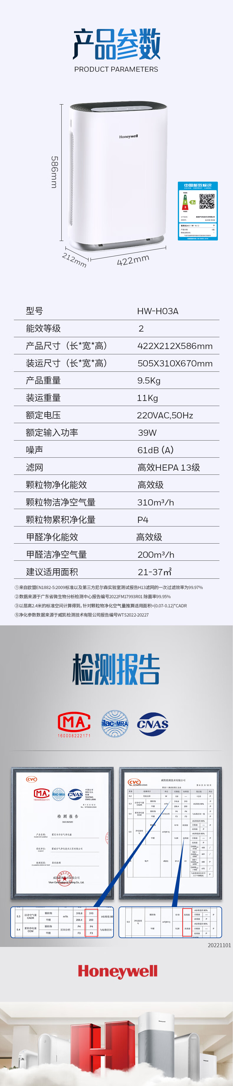 CADR值(m³/h)  :   310m³/h