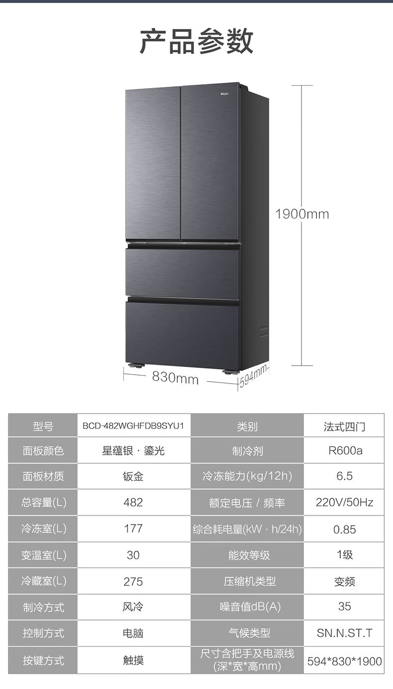 产品尺寸  :   宽830mm;深594mm;高1900mm