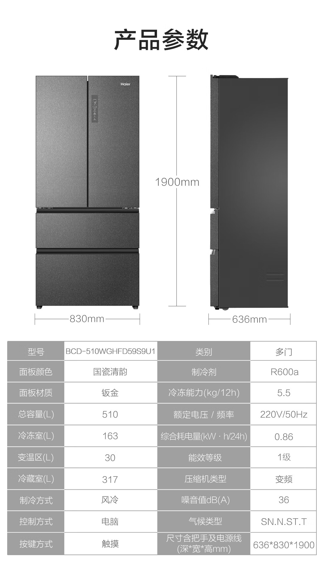 产品尺寸  :   宽830mm;深636mm;高1900mm