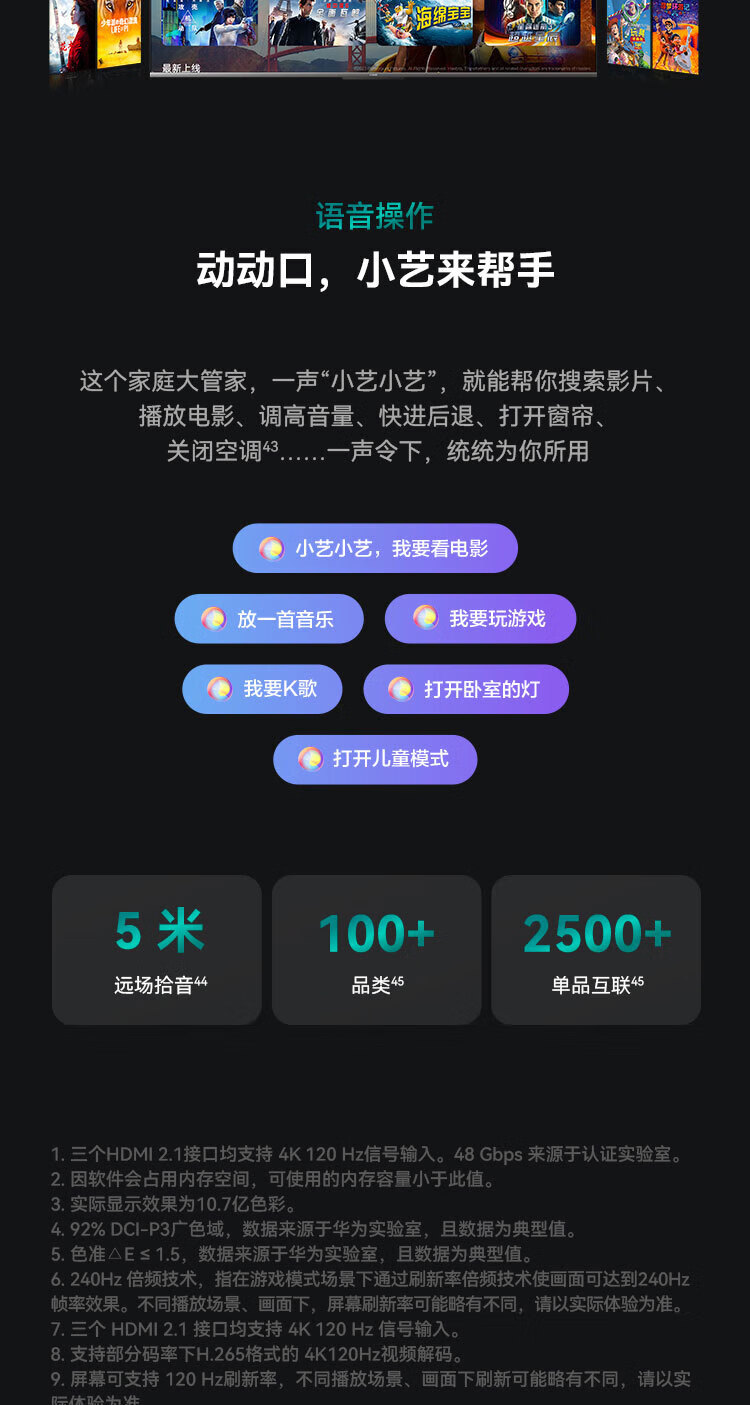 包装清单  :    1)整机 x 1; 2)语音遥控器 x 1; 3)快速入门 x 1; 4)保修卡 x 1