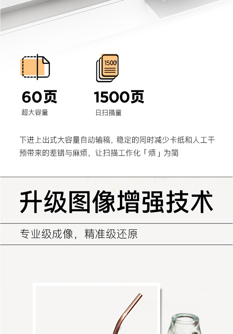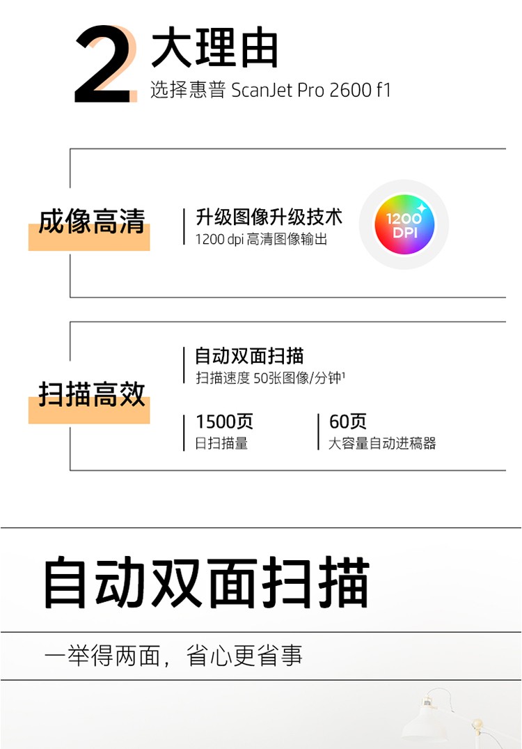 ADF彩色双面扫描速度(A4,200dpi)  :   100