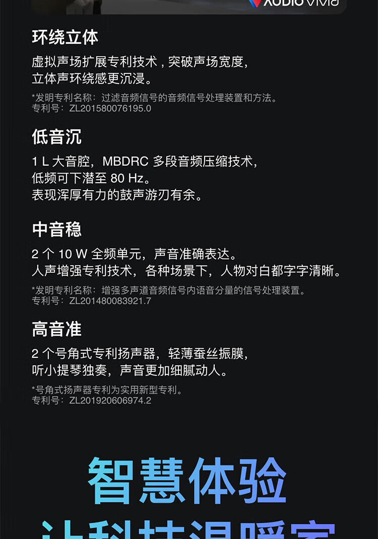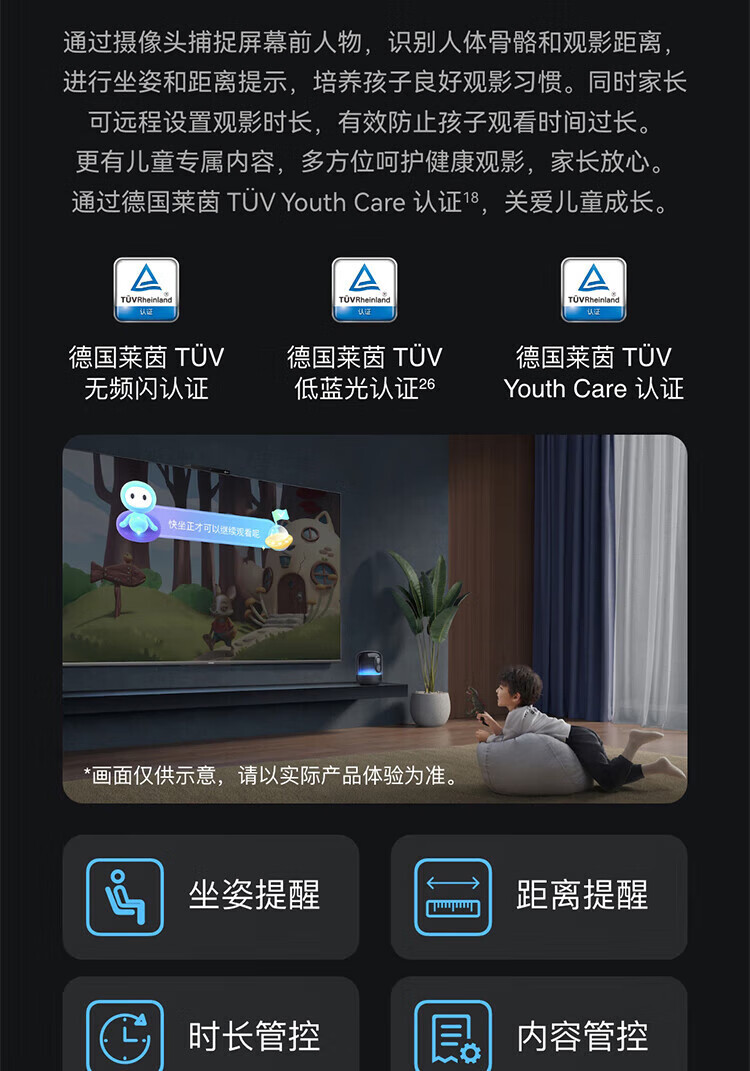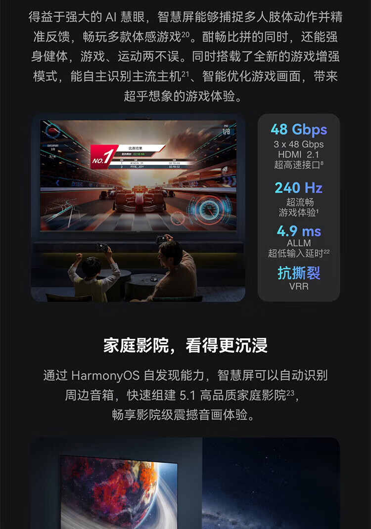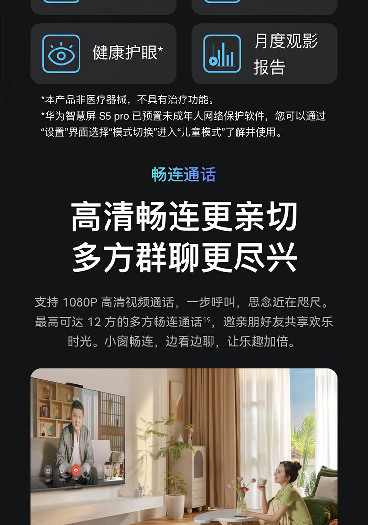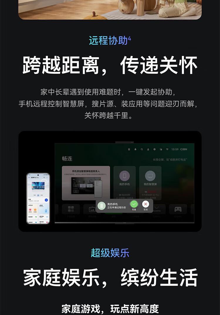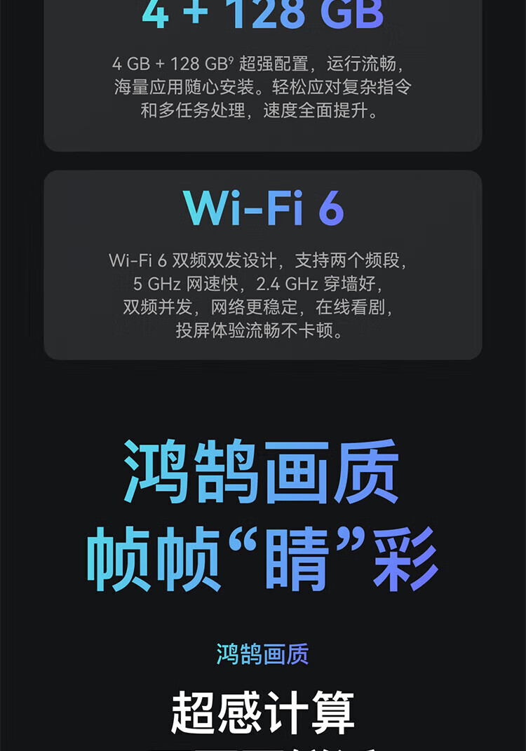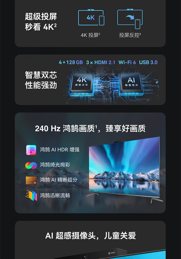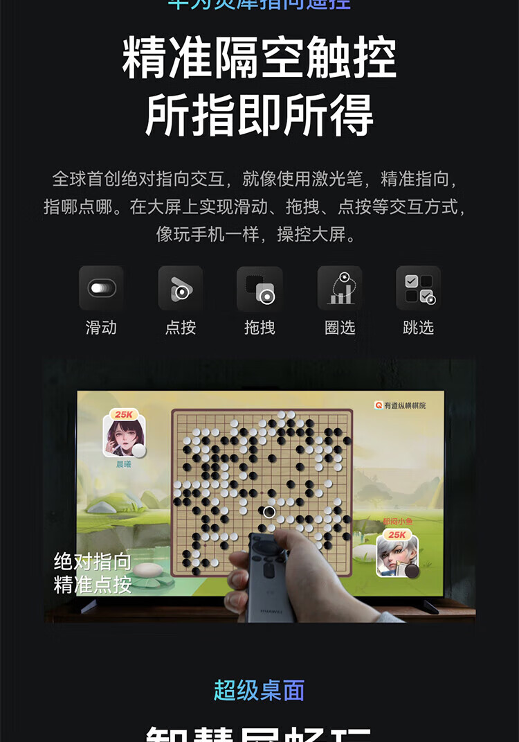 包装清单  :    1)整机 × 1; 2)底座 × 2; 3)底座螺丝 × 4; 4)华为灵犀指向遥控 × 1; 5)电源线 × 1;