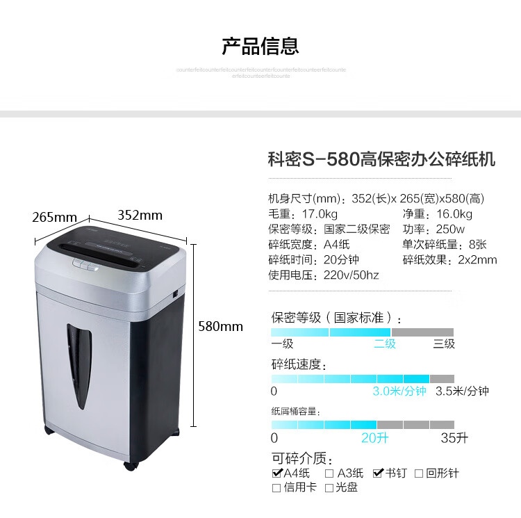 碎纸宽度(mm)  :   220