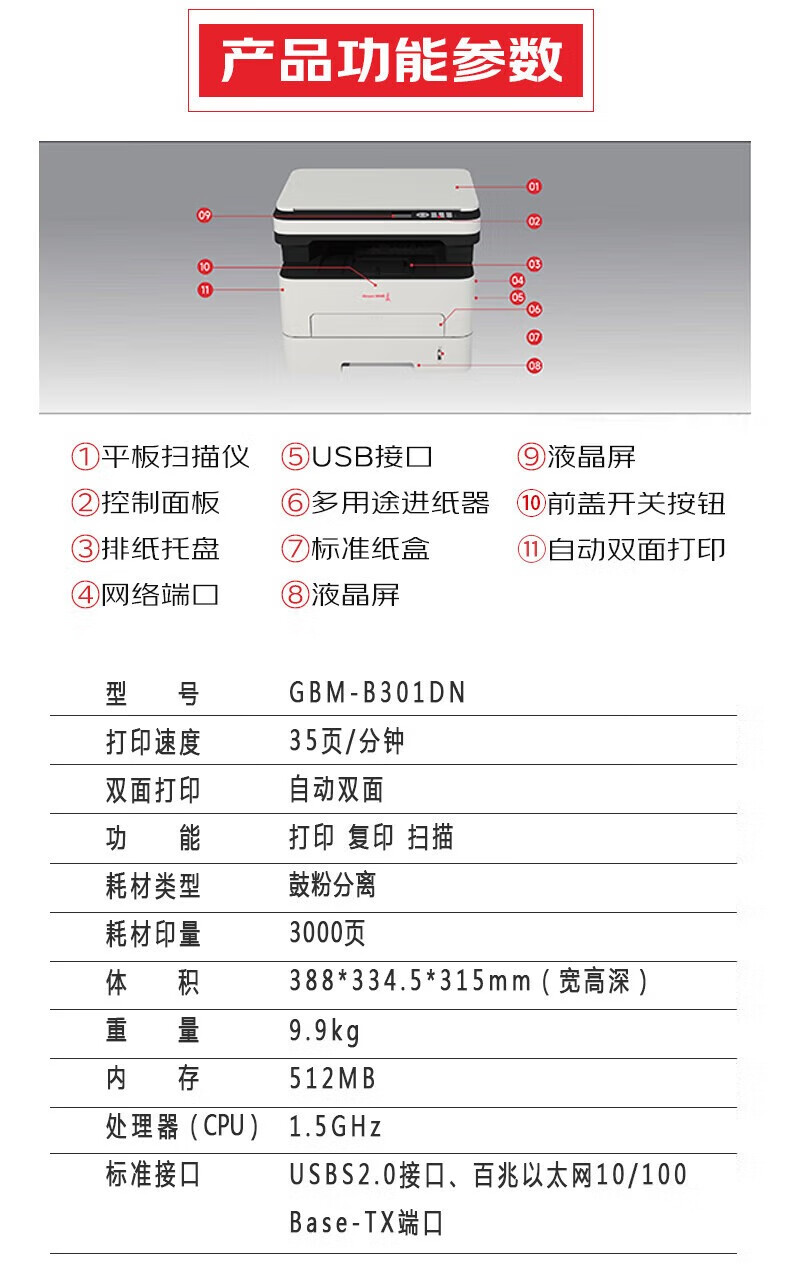 打印类型  :   黑白激光