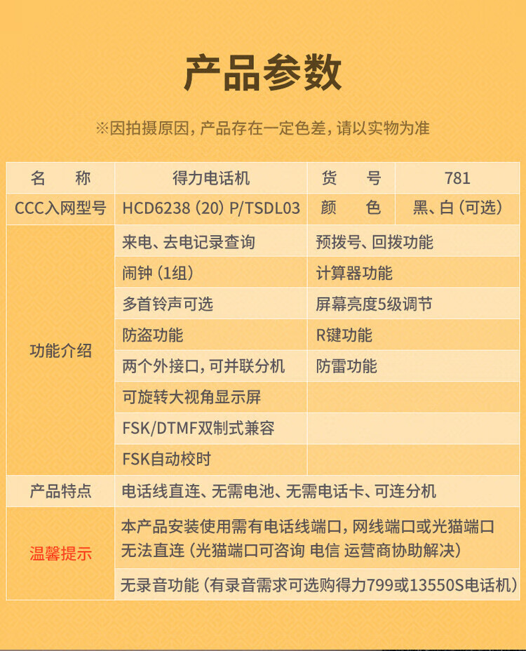 包装清单  :   电话机*1