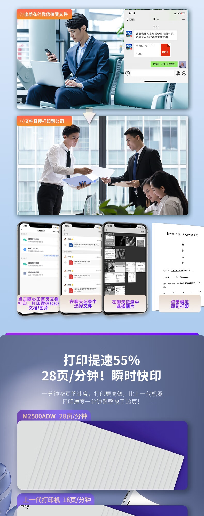 黑白打印速度(页/分钟 ppm)  :   28