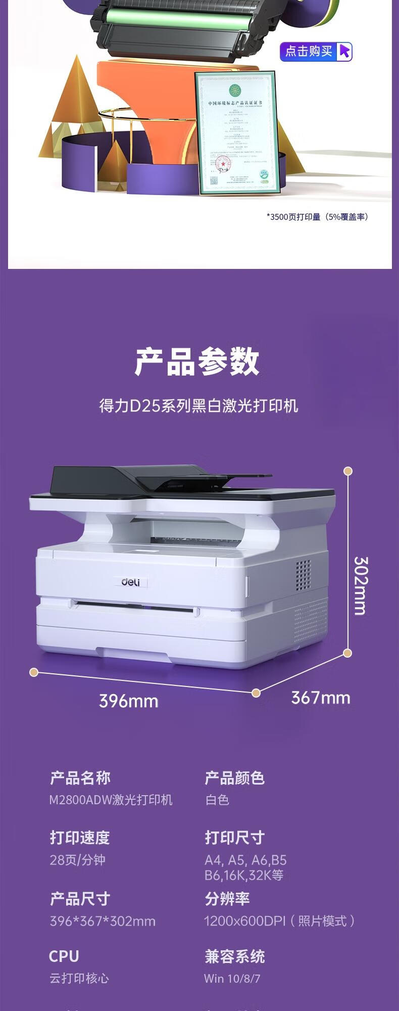 打印类型  :   黑白激光