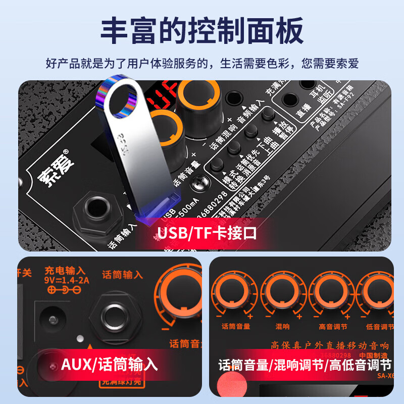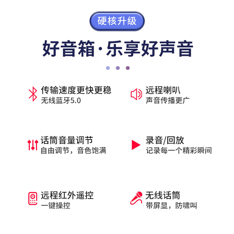 包装清单  :   音箱*1 遥控器*1 无线话筒*2 充电线*1 说明书*1