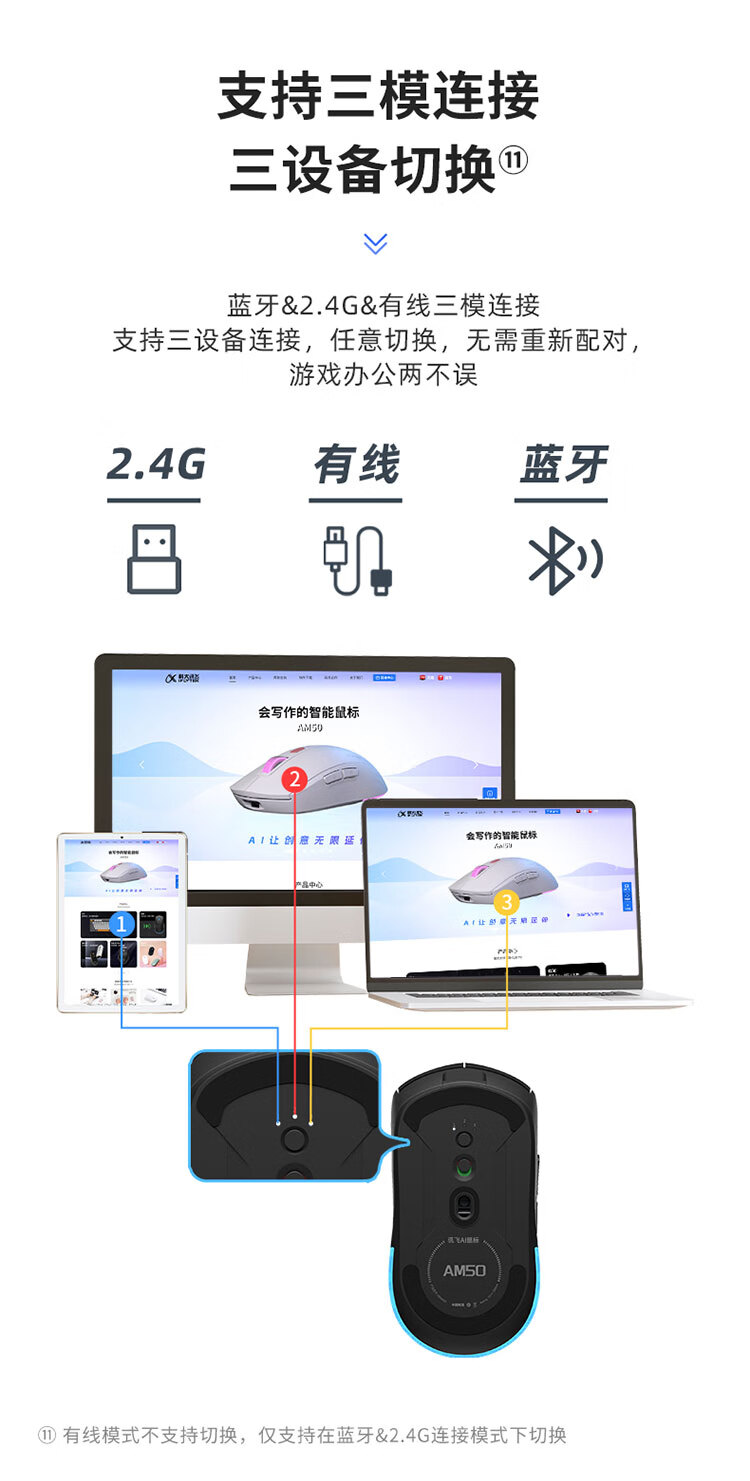 包装清单  :   说明书*1、Type-C数据线*1、AM50鼠标*1、接收器*1