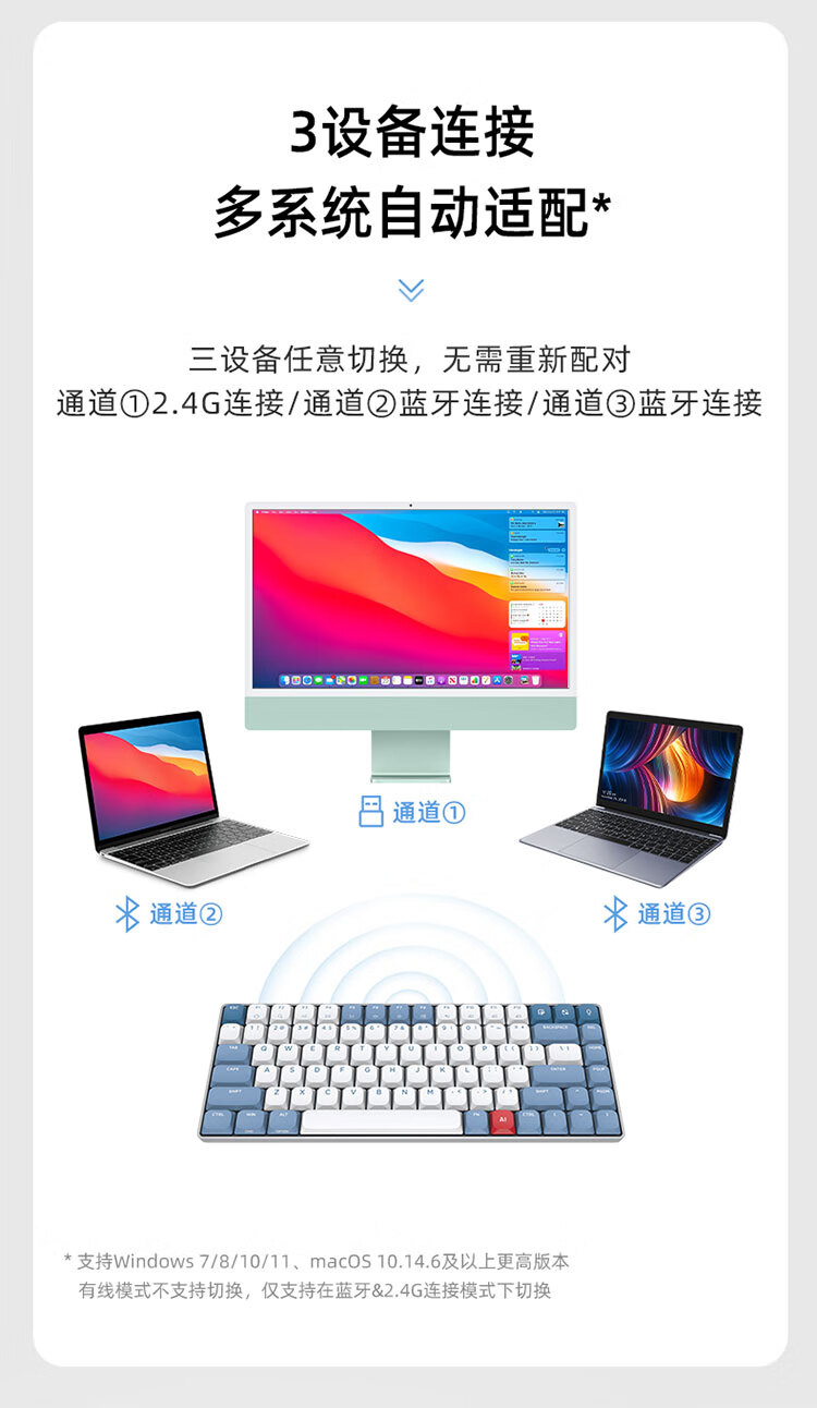 包装清单  :   键盘、接收器、数据线、说明书