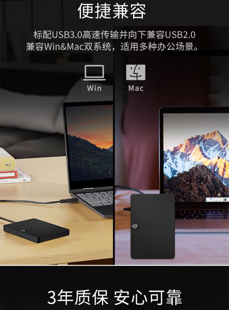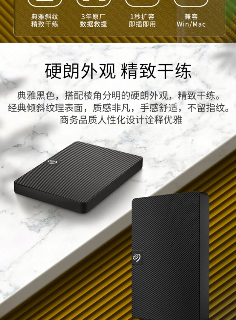 包装清单  :   Seagate® Expansion 便携式硬盘 2、长 18 英寸(45.72 厘米)的 USB 3.0 连接线 3、快速入门指南