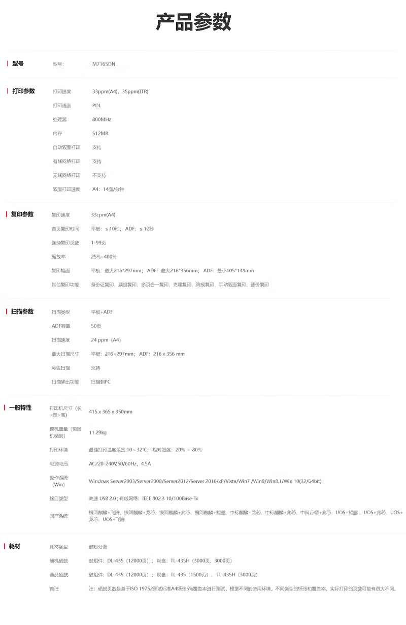黑白打印速度(页/分钟 ppm)  :   33