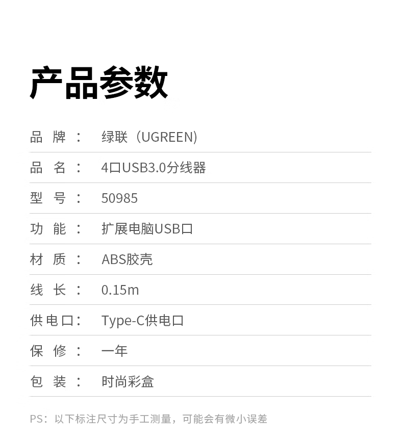包装清单  :   USB 3.0HUB四口集线器 × 1