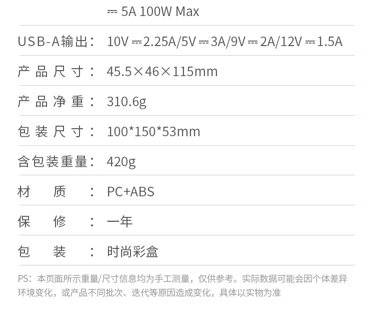 产品尺寸(mm)  :   长45.5mm;宽46mm;高115mm