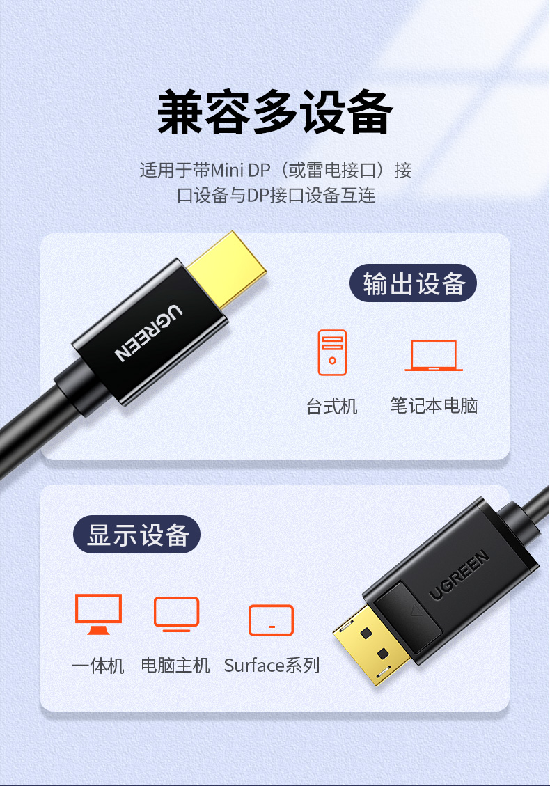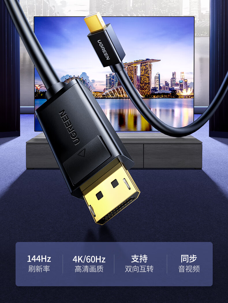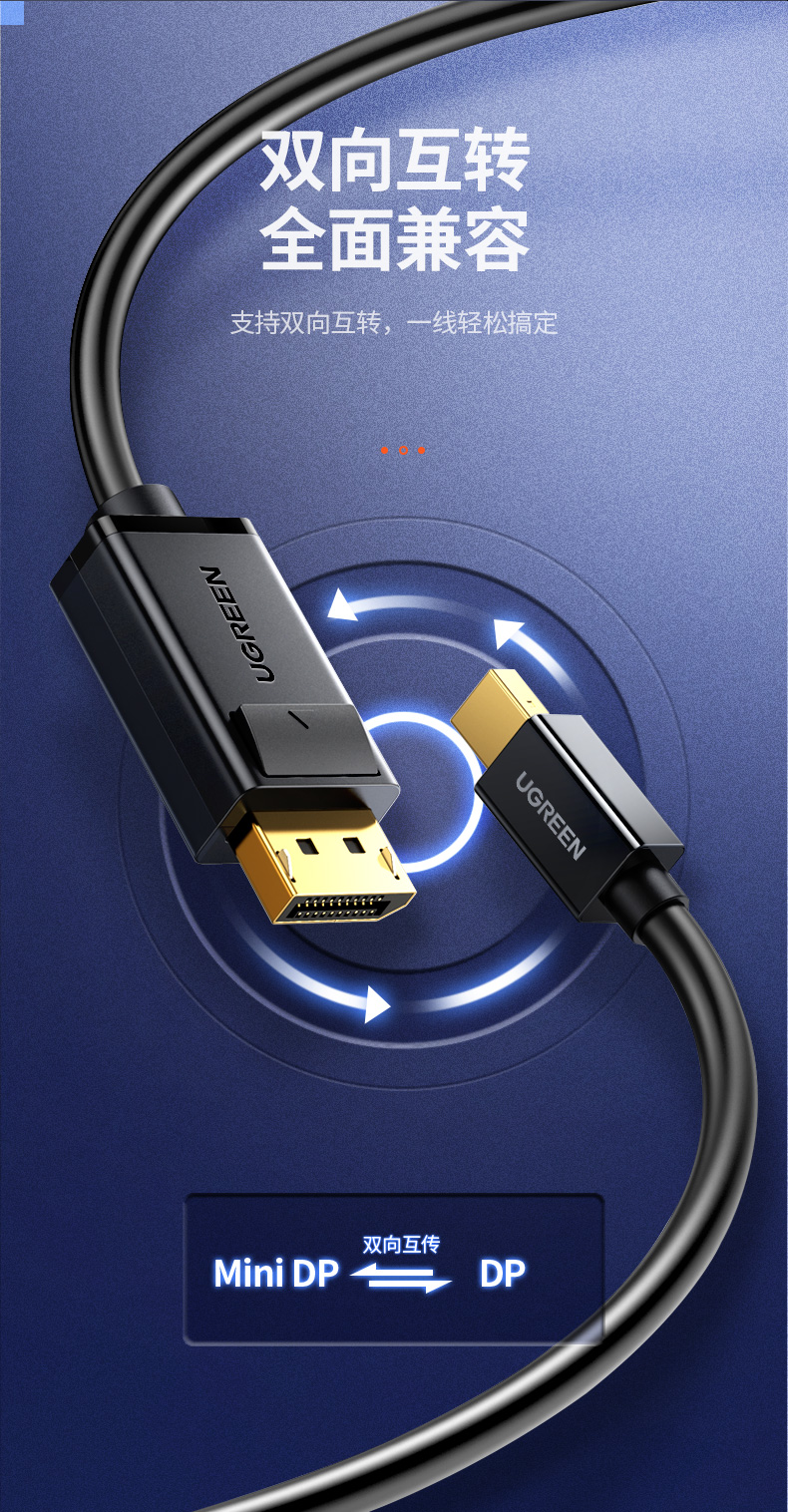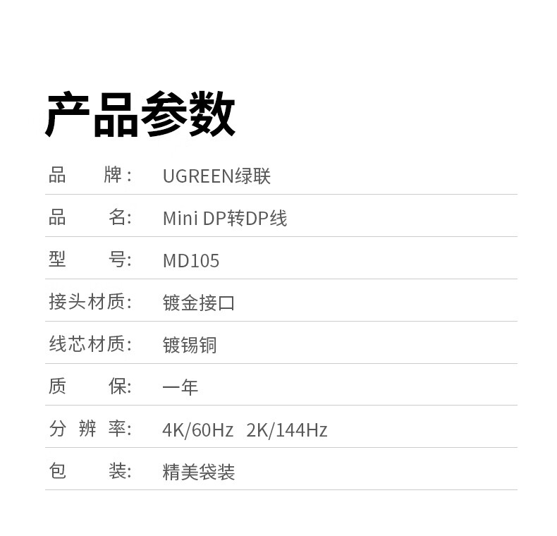 包装清单  :   Mini DP转displayport连接线 黑色1.5米 × 1