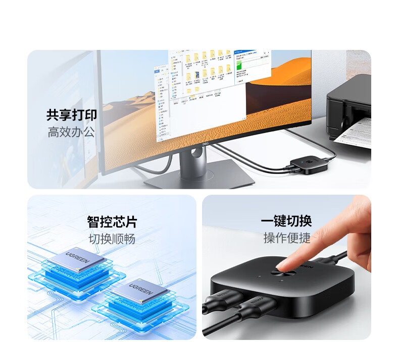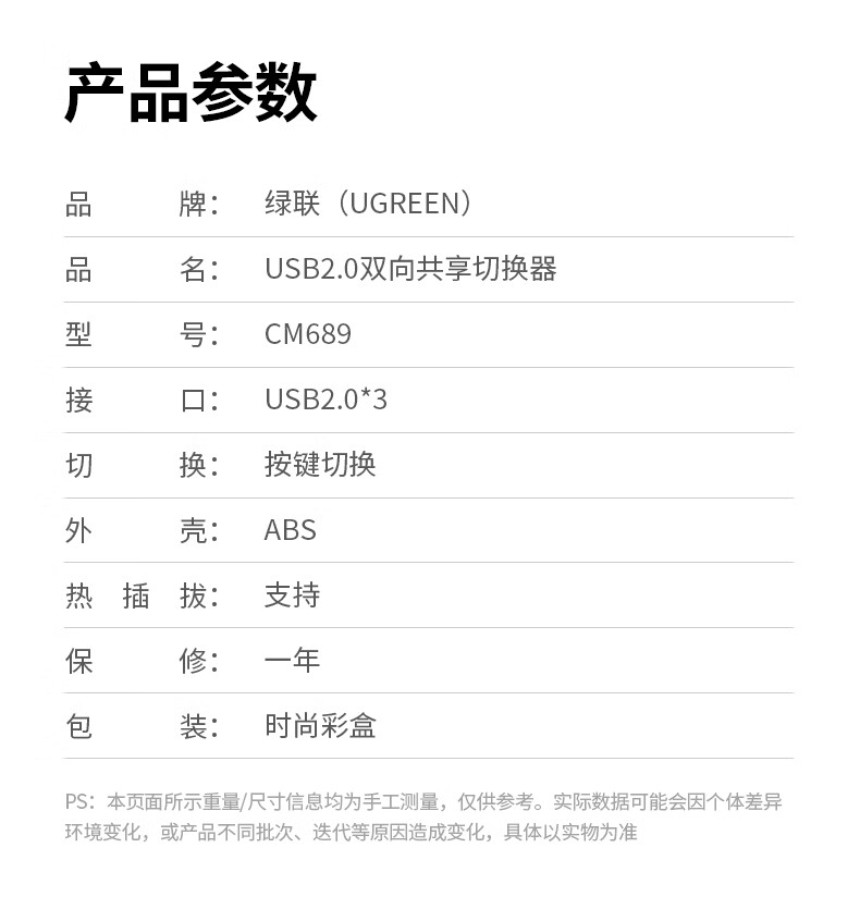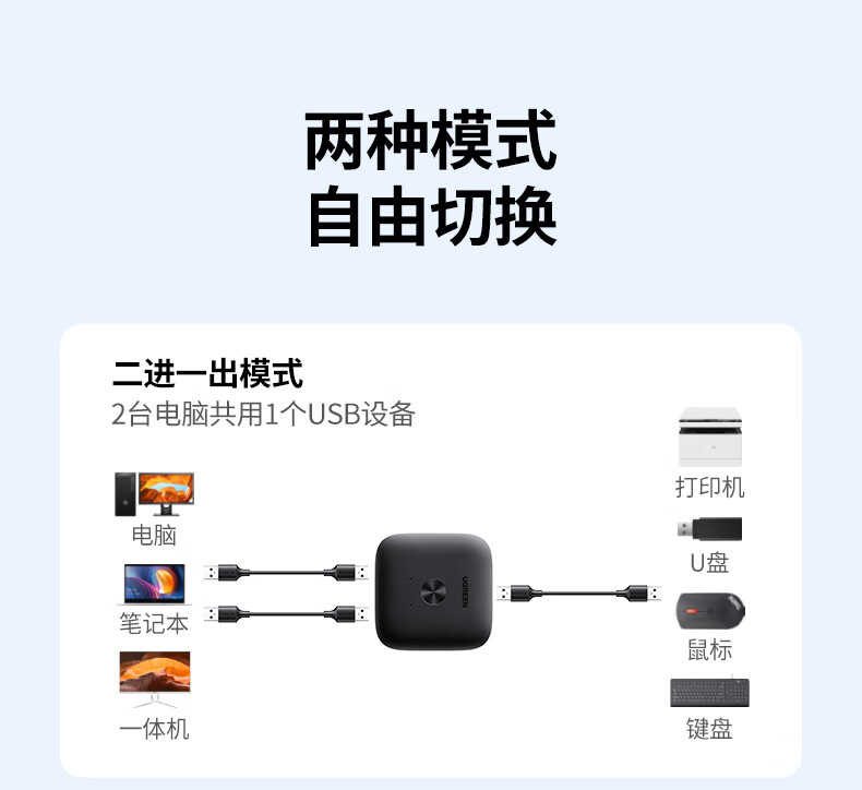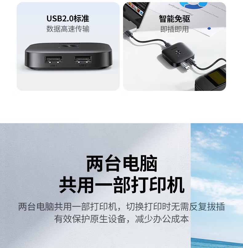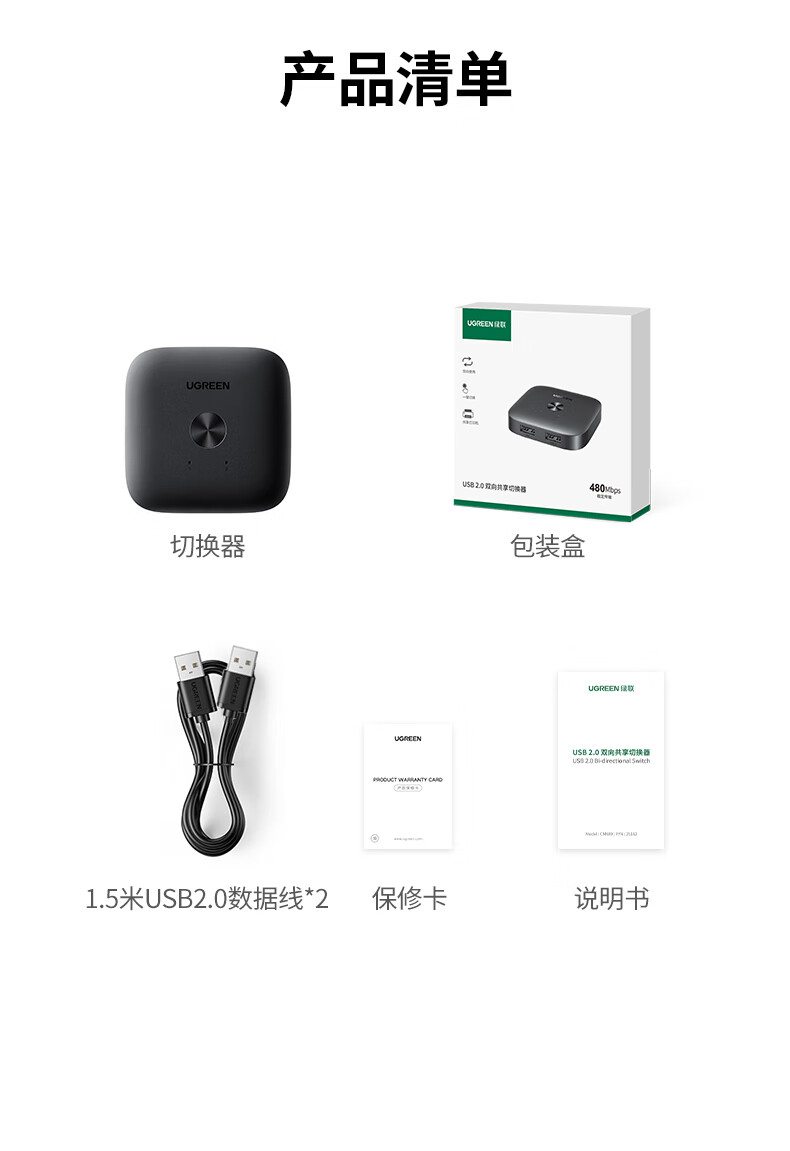 包装清单  :   USB打印机共享器*1、USB线*2